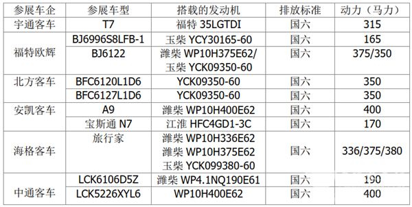 根據(jù)中國客車網(wǎng)統(tǒng)計(jì),本次參展的10款燃油動(dòng)力車型具體搭載的發(fā)動(dòng)機(jī)如下: