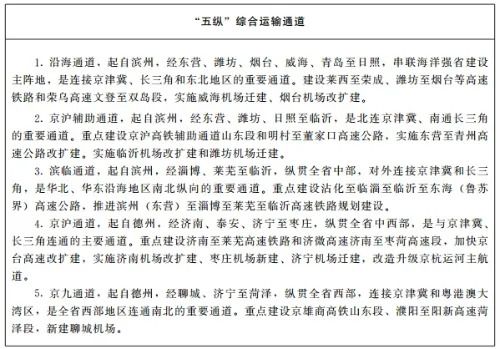 (三)建設(shè)“1+2+4+4+N”綜合交通大樞紐。建設(shè)山東半島世界級港口群,打造和培育青島、濟(jì)南2個國際性綜合交通樞紐城市,打造和培育煙臺、濰坊、臨沂、菏澤4個全國性綜合交通樞紐城市,打造和培育濟(jì)南機場、青島機場、煙臺機場、臨沂機場4個樞紐機場,加快建設(shè)一批綜合交通樞紐設(shè)施,構(gòu)建多層次、一體化的“1+2+4+4+N”綜合交通樞紐體系。