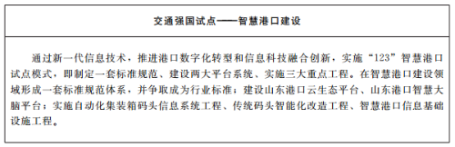 1.建設(shè)山東半島世界級港口群。建設(shè)世界一流海洋港口,加快推進(jìn)以青島港為龍頭,日照港、煙臺港為兩翼,濰坊港、威海港、東營港、濱州港為補充的山東半島世界級港口群建設(shè)。優(yōu)化港口功能和布局,推進(jìn)沿海港口岸線資源統(tǒng)一規(guī)劃、突出特色、高效開發(fā),打造國際航運服務(wù)基地、大宗商品儲運交易加工基地,推動從裝卸港向樞紐港、貿(mào)易港和金融港升級。到2025年,沿海港口泊位達(dá)到627個,其中萬噸級以上泊位達(dá)到360個;吞吐量達(dá)到18億噸,其中集裝箱4000萬標(biāo)箱。